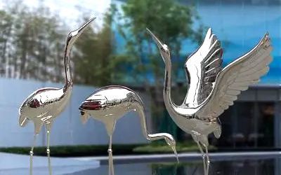 應用于水景之中的不銹鋼雕塑,包括但不限于人物、動物植物、景觀擺件等,常見如貝殼、海螺、海豚、魚、仙鶴、天鵝、青蛙、小鹿、荷花、蓮花、海浪浪花、水滴、假山、鏤空球、圓環等等。